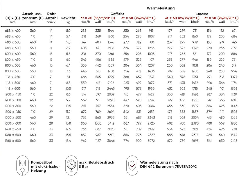 - Robust und langlebig: Entspricht dem EN442-Standard. Diese Badheizkörper sind aus hochwertigem Stahl gefertigt und verwenden einteilige Schweißtechnik für eine außergewöhnlich robuste Konstruktion, die eine lang anhaltende Wärmeabgabe gewährleistet. Die umweltfreundliche Beschichtung verhindert Wasseraustritt und Rost und ist speziell für feuchte Umgebungen ausgelegt.