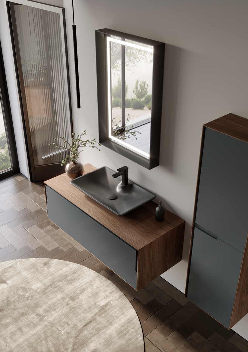 Das Orka Craft Badmöbel-Set überzeugt durch modernes Design, hochwertige Materialien und eine besonders langlebige Verarbeitung. Mit 100 cm oder 120 cm Breite, einer eleganten Farbkombination aus Kompaktnussbaum und Matt Anthrazit sowie LED-Beleuchtung ist es die ideale Lösung für stilvolle Badezimmer mit hohem Komfortanspruch.