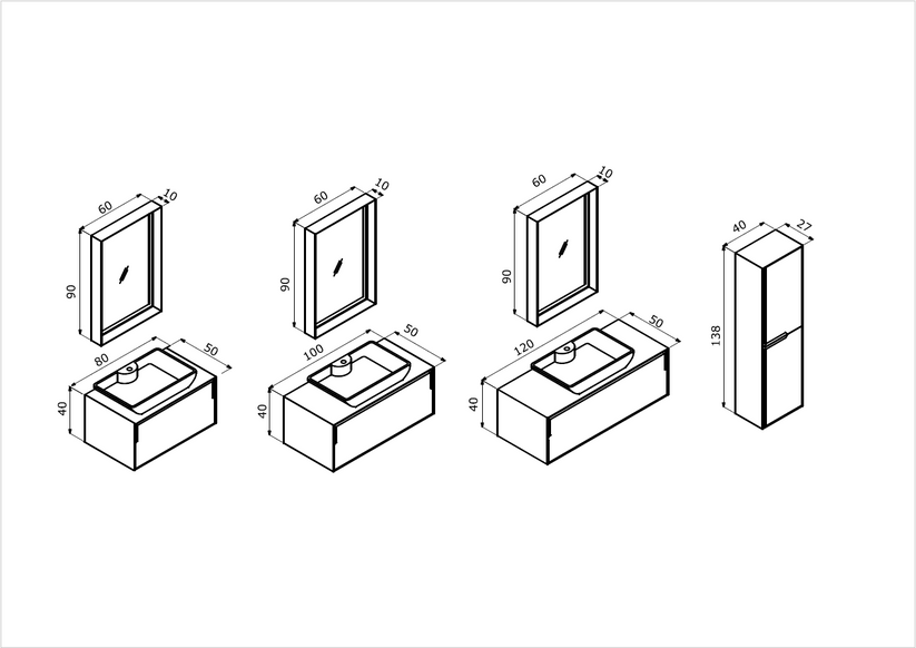 Lieferumfang | Unterschrank, Keramik-Aufsatzwaschbecken (Handwaschbecken), LED-Spiegel |