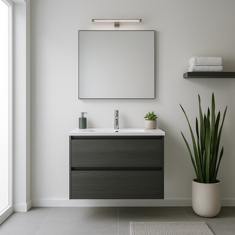 Orka Lova Badmöbel-Set | 60 cm / 80 cm | Weiß, Anthrazit, Eiche Hell/Dunkel | Mit Keramik-Waschbecken & LED Spiegel | Soft-Close Schubladen